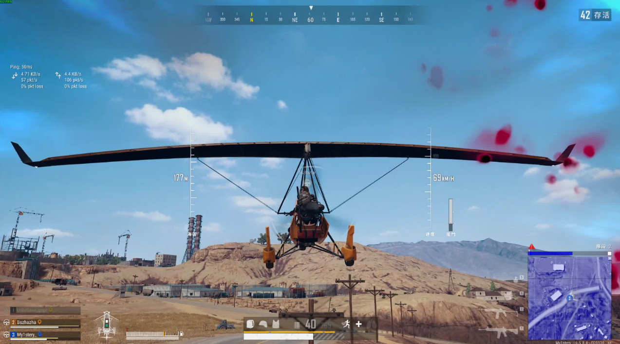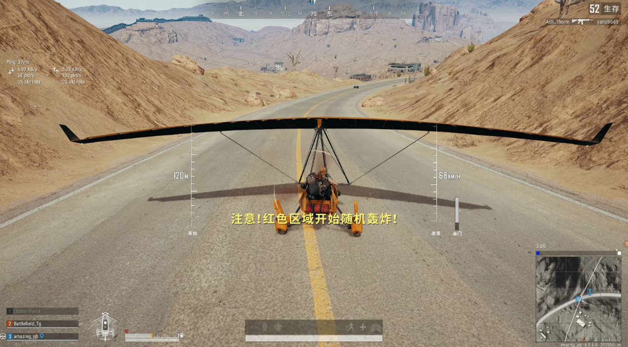 战术应用方面,螺旋降高可规避防空火力:保持60°右倾并下压鼠标实现高速盘旋下降。波浪飞行通过周期性按压W键制造20-30米高度波动干扰狙击瞄准。贴地掠袭需维持160km/h速度利用地形遮蔽,适合决赛圈隐蔽转移。后座队友可全程使用武器,但需注意螺旋桨对近距离玩家有伤害判定。机身仅引擎可被破坏,机翼耐久度高于主体,受损后仍可滑翔迫降。