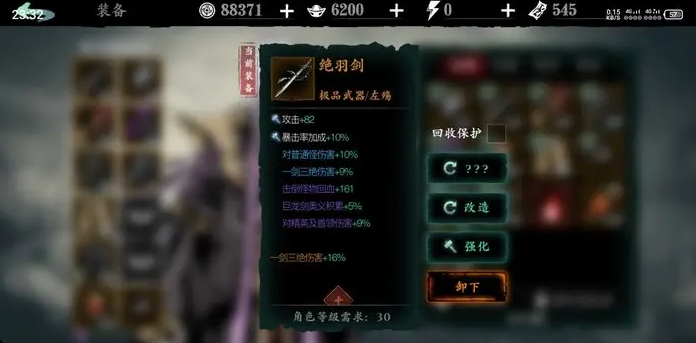 轻羽的玩法更考验操作,技能链建议升龙+光龙突击+定身剑+落星,搭配挑剑鞘+剑阵+一剑三绝+裂空斩。轻羽的技能后摇可以通过闪避取消,但要注意闪避有冷却时间,别贪刀。装备选择50级绿武套装,它的追踪剑气效果能让输出更稳定。真伤套装也是必备的,否则打高防敌人会有点吃力。心法方面优先选减CD和杀意回复类,保证技能链无缝衔接。
