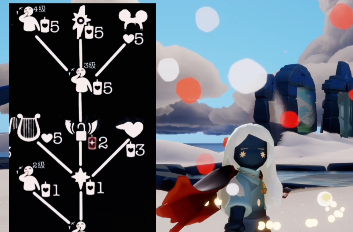 进入墓土后直奔第三张图,这里的环境比较昏暗,建议提前点亮周围的蜡烛确保视野。往右侧封住的通道飞行,穿过黑水水域就能看到一艘沉船,害怕先祖就藏在沉船后方。触碰先祖完成记忆收集后,立刻回遇境打开墓土星图,找到对应星座召唤先祖。注意解锁主干节点需要消耗普通蜡烛,而圆琴本身需要5颗爱心兑换,爱心可以通过和好友互赠蜡烛积攒。如果发现先祖无法召唤,可能是漏了前置步骤。必须先在沉船处收集完整的先祖动作,否则星图里不会显示兑换按钮。遇到黑水水域的冥龙干扰时,可以借助场景中的掩体躲避,或者使用倒地动作快速脱离仇恨范围。圆琴的兑换优先级较高,建议优先解锁它而非其他装饰类物品,毕竟乐器能带来更多互动乐趣。