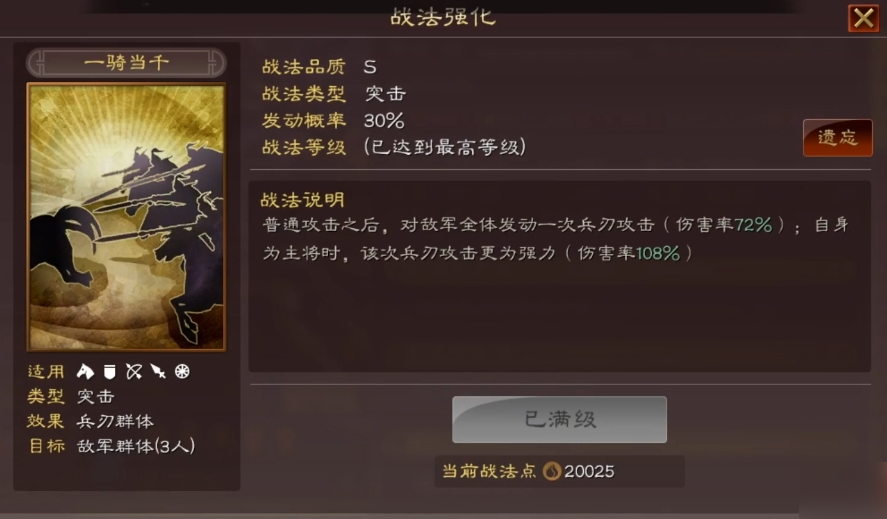 兵书系统进一步强化了骑兵的作战能力。虚实兵书适合输出型骑兵武将,增加伤害效果;军形兵书则更适合辅助型骑兵,提高生存能力。特定兵书如胜战能够在前两回合提供额外伤害加成,与骑兵速战速决的特点高度契合。兵书选择应当与武将战法形成联动,例如携带突击战法的武将可以选择增加突击伤害的兵书,使战斗效益最大化。