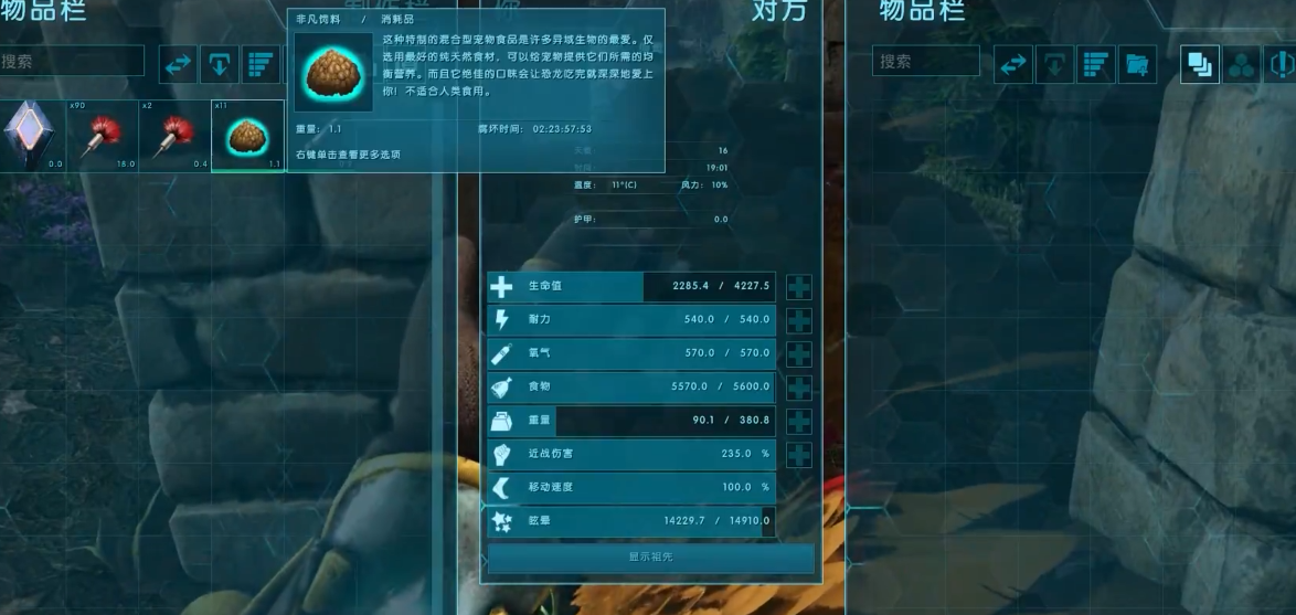 如果想更高效地驯服狮鹫,可以用狮鹫蛋饲料,配方稍微复杂一点:1个狮鹫蛋、1份优质熟肉、10个纤维、1个土豆、1个玉米、1个柠檬、1个虎尾兰种子和1瓶水。虎尾兰种子可以在琥珀商店的花园里买到,而狮鹫蛋则需要咱们先驯服两只同种类的狮鹫,让它们繁殖才能获得。记得把材料放进烹饪锅或工业大锅,加入燃料点燃就能制作了。