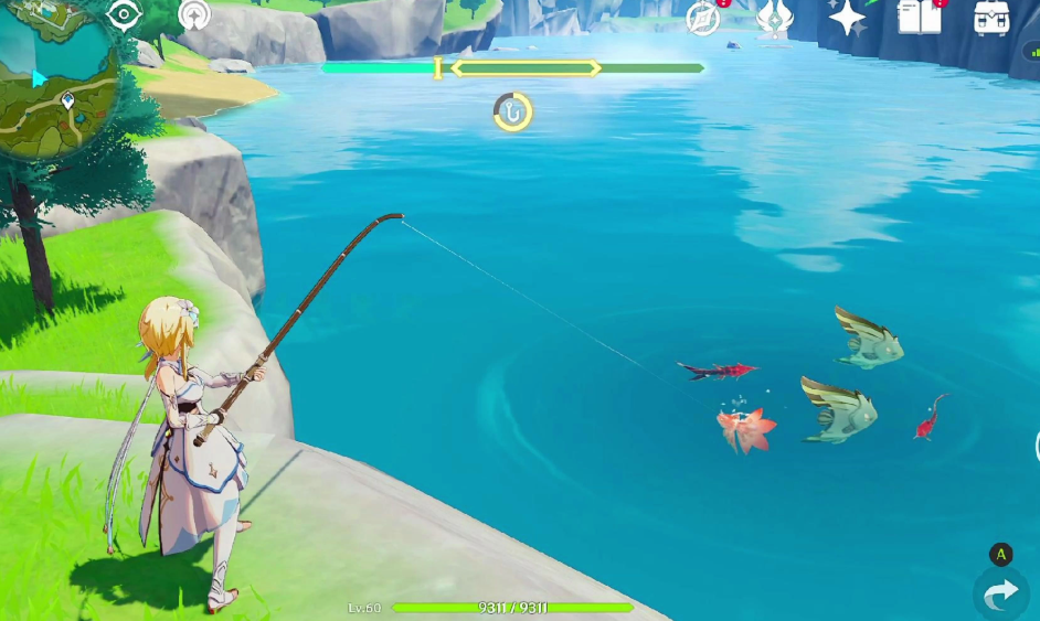 甩竿时瞄准鱼群中心位置,太近会吓跑它们,太远又懒得理你。咬钩后盯着张力条,让黄色标记稳在最佳区间——这就像调音量键,按太猛或太怂都会翻车。稀有鱼挣扎特别凶,手忙脚乱时不妨换个有钓鱼天赋的角色,比如降低鱼儿受惊概率的,或者自带张力稳定的。记住钓完一个点的鱼别急着走,调个时间昼夜切换,说不定藏着第二波惊喜。