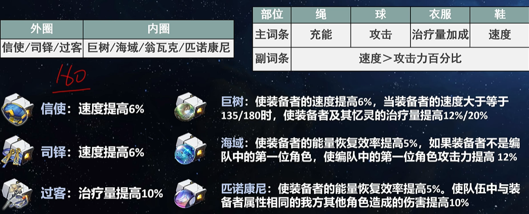 在具体词条选择上,头部和手部固定选择生命值和攻击力,躯干优先选治疗量加成,脚部一定要选速度。位面球可以选择攻击力或虚数伤害加成,如果觉得治疗量溢出也可以换成防御力或生命值。连结绳推荐能量恢复效率,这样能更快地释放终结技。副词条方面优先选择速度、攻击力和效果抵抗,这些属性对罗刹的帮助最大。
