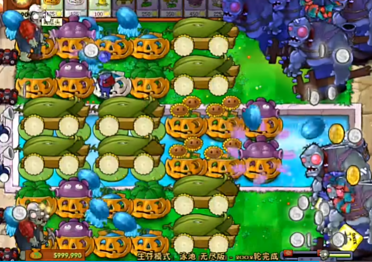 等阳光攒得差不多了,就可以考虑升级火力啦。冰西瓜是必备的,它能减速僵尸,让其他植物有更多输出时间。忧郁菇也是好东西,放在靠近前排的位置,能清理成群的普通僵尸。别忘了给关键植物套上南瓜头,尤其是忧郁菇和冰西瓜,它们可是防线的核心。玉米加农炮虽然贵,但后期绝对是主力,记得放在安全位置,优先保护它们。