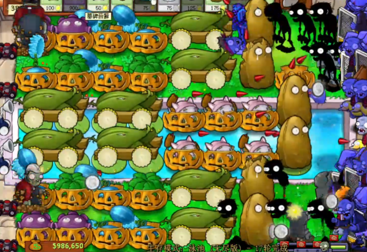 补齐玉米加农炮和冰西瓜形成主力输出,水路前三排放忧郁菇增强群攻能力。地刺王专门针对冰车僵尸,需在冰车出现前提前部署。气球僵尸需用三叶草即时清除,矿工僵尸则需在第八排放置大喷菇拦截。每波僵尸刷新间隔为6-25秒,需掌握玉米炮34.75秒的冷却节奏,寒冰菇和灰烬植物保留50秒冷却应对突发状况。此阶段需频繁检查南瓜罩完整性,及时修补受损防线。