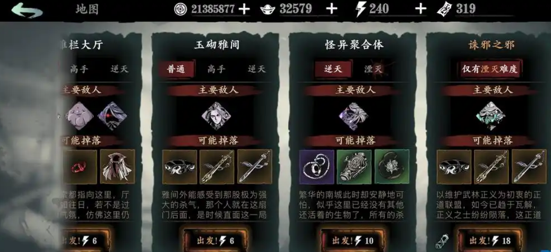 刷剑神套的过程中,湮灭难度的副本是关键。比如里武林·湮灭模式下的强敌镜像·诛邪之邪关卡,这里会掉落剑神铁君子套的部件。如果运气不错,还能在虚空商店或妙手小张的杂货铺兑换到部分装备。剑神套的掉率不算高,可能需要反复刷图才能集齐。