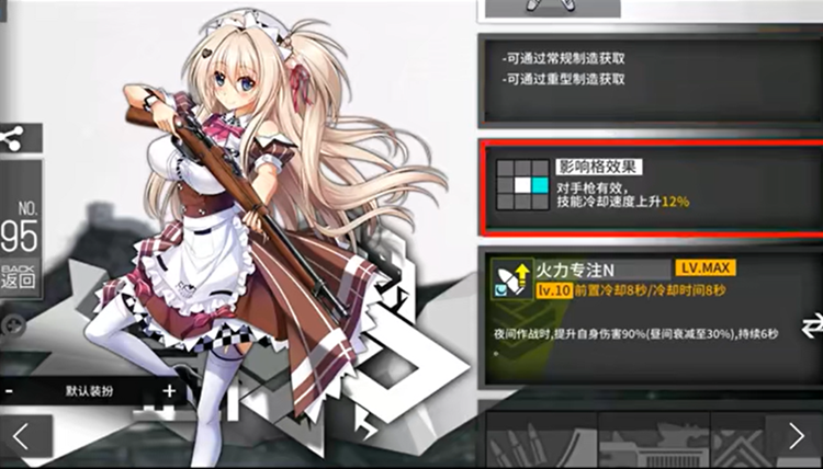 养成方面汉阳造88式对新手特别友好,建造公式简单容易出货,前期就能轻松获得。虽然核心消耗比普通三星要高些,但绝对物超所值,改造后直接变身四星实力,性价比超高。技能升级后触发率提升明显,专属装备也不难获取,整体培养路线非常平滑,不用投入太多资源就能形成战斗力,是过渡期的好帮手。