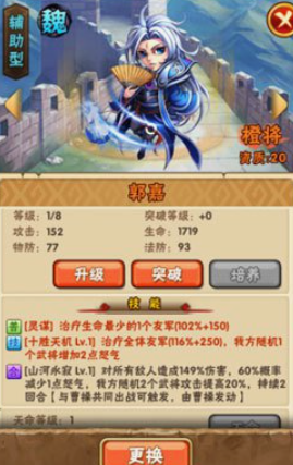 实战中要注意技能释放时机,曹操的主动技能最好在敌方关键武将行动前使用,最大化减益效果。合击技能则适合在敌方聚集时发动,配合范围伤害武将能打出爆炸输出。PVP中遇到高防御阵容时,可以调整天赋选择智谋路线,利用百分比伤害技能克制坦克型对手。培养方面优先升级主动和合击技能,装备强化以攻击和生命为主,确保曹操在战场上既能站得住又能打出致命一击。