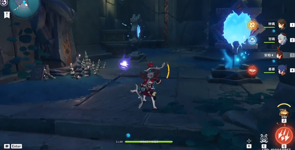 进入地下后,需沿通道探索并击败守卫的敌人,包括空壳怪和丘丘人。部分路径被幻法屏障阻挡,需通过激活附近的眬幻平台显示实体落脚点。在地下二层密室中,需再次调整三面镜子的状态:将左侧和中间的镜子各旋转三次并保持冰镜状态,右侧镜子旋转一次。完成解密后,光线路径将连通机关,解锁最终区域的宝箱及任务道具。