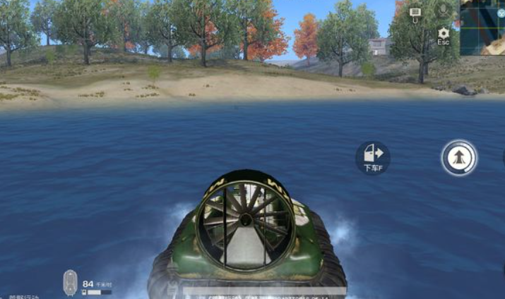 找到气垫船后,记得先观察周围是否安全,毕竟它的体积大容易被发现。靠近时要跳到水里游向船头位置,只有船头会显示驾驶按钮。驾驶操作很简单,屏幕左右两侧有方向箭头,左边控制前后,右边控制左右转向。它在水上的速度比陆地快很多,水上最高能到85公里/小时,而陆地只有65左右,和徒步跑步差不多。