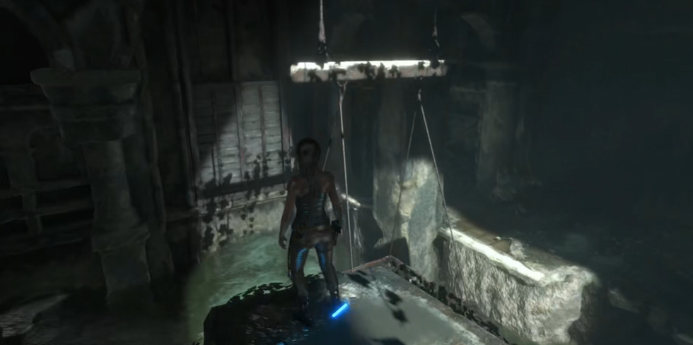 被水冲下去后别慌,注意看周围环境。水位上升时,漂浮的木板会靠近右侧墙壁,抓住机会跳上去。然后从木板上往右跳到墙壁的攀爬点,这里需要快速反应,稍微慢一点可能错过时机。爬上墙壁后,沿着白色刮痕的路线向右平移,最后借助柱子起跳就能抓住横梁了。