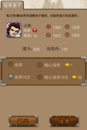 前期集中资源培养两对合璧弟子,优先提升他们的攻击和防御属性,内力型弟子则侧重内力成长。不要分散资源,否则会导致阵容强度不足。合理利用培养丹,尽量将属性点洗到攻防上,避免浪费在血量和无关属性上。如果遇到卡关情况,可以调整弟子站位,比如将防御型弟子放在前排吸收伤害,攻击型弟子放在后排输出。