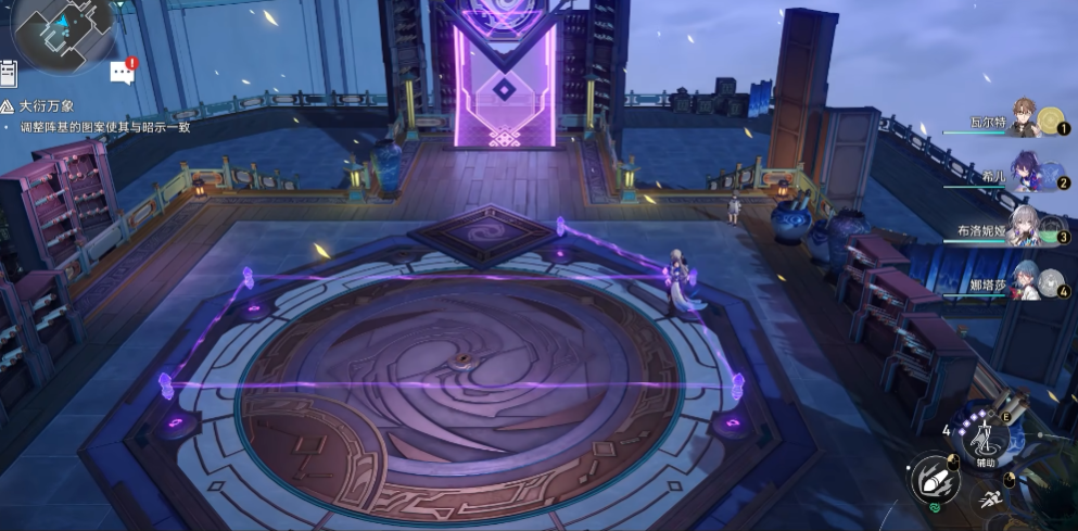 第二个阵法的解谜方式和第一个完全一致,同样是1号到A,2号到B,3号到C,4号到D。虽然看起来简单,但要注意水晶移动的先后顺序不能乱。完成第二个阵法后别急着走,因为一天内可以完成三次解谜,继续和绘星对话就能开启第三次挑战。