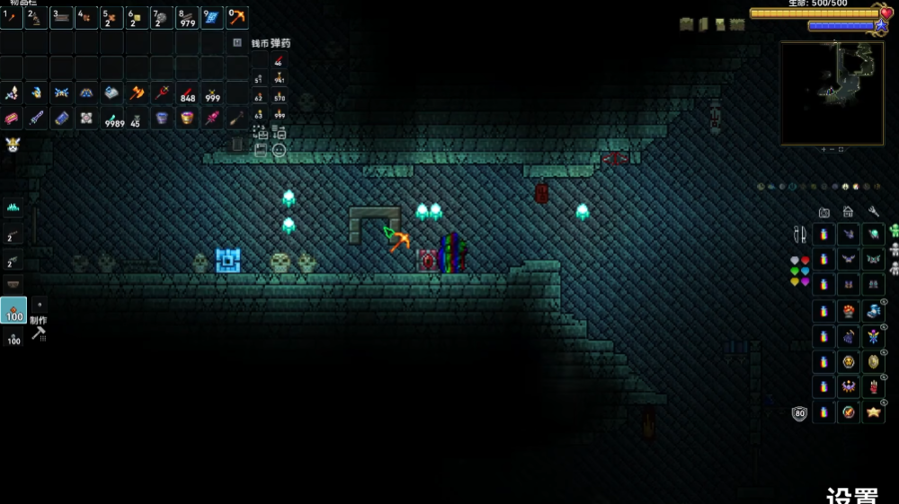 准备好钥匙之后,你就可以去地牢里寻找对应的宝箱了。地牢在困难模式下会变得非常危险,里面的怪物攻击力很高,所以建议你穿戴好当前阶段最好的防御装备,带上足够的治疗药水再下去探险。这些特殊宝箱在外观上有独特的颜色和样式,比如神圣宝箱是淡蓝色的,腐化宝箱是紫色的。它们通常被放置在地牢比较深或者比较隐蔽的房间里。当你找到宝箱后,直接走上前去点击它,只要你背包里有对应的钥匙,游戏就会自动使用钥匙并打开宝箱,让你拿到里面的终极武器。