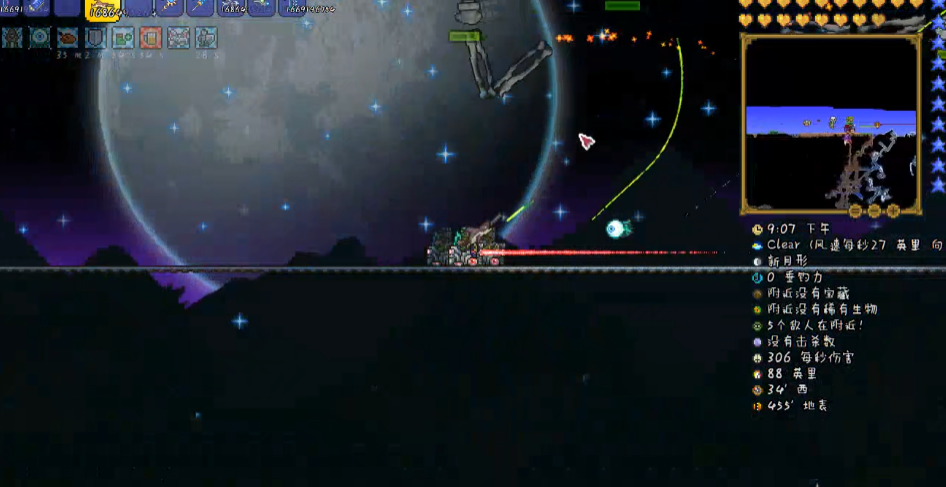 搞定毁灭者,手里有了更好的材料,比如力量之魂能做巨兽鲨机枪,这时候就可以挑战双子魔眼了。这哥俩是两个会飞的眼珠子,一个喷激光一个喷火,第二阶段攻击特别猛。打它们核心思路就是一个遛字。你需要搭建非常长的水平平台,方便你来回跑动拉开距离。喝上重力药水或者用上翅膀,在空中上下翻飞和它们绕圈子,同时用射速快、弹药足的远程武器,比如刚才说的巨兽鲨,持续不断地输出。关键点在于始终保持移动,让它们追着你跑,没机会停下来对你释放完整的攻击序列,这样慢慢磨就能磨死。