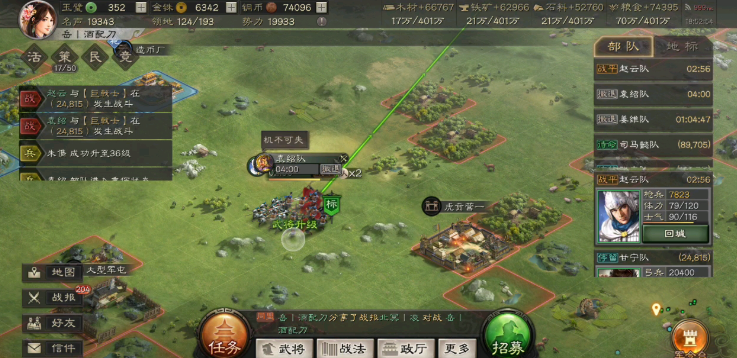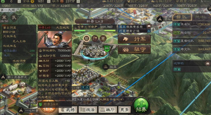 你的整体发展水平也会影响到队伍的扩张能力。游戏中的名声值是一个很重要的指标,名声越高,你能占领的土地上限就越多。虽然名声不直接增加队伍数量,但占领更多、更高级的土地意味着你有更丰厚的资源收入。有了充足的资源,你才能更快、更无压力地去升级军舍、军营这些关键建筑,形成一个良性的循环:资源多 → 建筑升得快 → 队伍多且强 → 占领更高级地 → 资源更多。平时积极完成任务、参与活动、占领高级资源地来积累名声,对于你长远的发展,包括支撑更多部队的消耗,都是非常重要的基础。