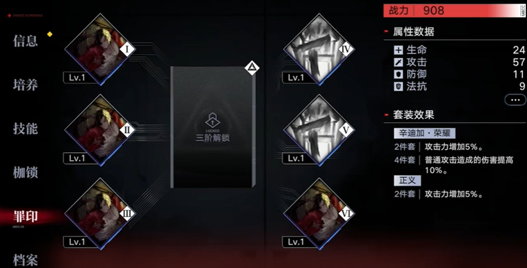 罪印是一种可以提高角色属性的系统,其使用核心在于装备配置与套装激活。游戏中的罪印分为蓝色、紫色、橙色三种品质,品质越高带来的属性加成越好。使用罪印的具体操作路径是:在游戏主页面点击进入禁闭者界面,选择你想要装备的角色,在其详细页面中便会找到罪印选项。点击进入后,即可为当前角色穿戴你已经拥有的罪印,每个角色共有六个普通罪印装备槽。当你为角色配置了相同系列的罪印时,将能激活额外的套装加成效果。