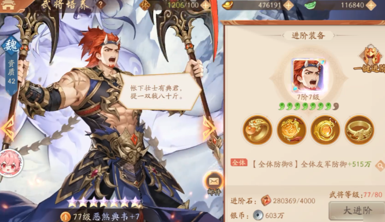 资源分配上要讲究策略,由于紫金将培养成本较高,建议玩家集中资源优先培养1-2个核心紫金将,比如优先提升输出型武将的星级和装备,再逐步完善辅助位,避免分散投入导致进度缓慢。日常可以通过竞技商店和巡逻积累进阶石、金币等材料,将星系统达到太微阶段后,优先进阶至天机性价比较高。注意武将的等级和品质越高,升星后的收益越大,所以先保证主力武将突破到较高星级。