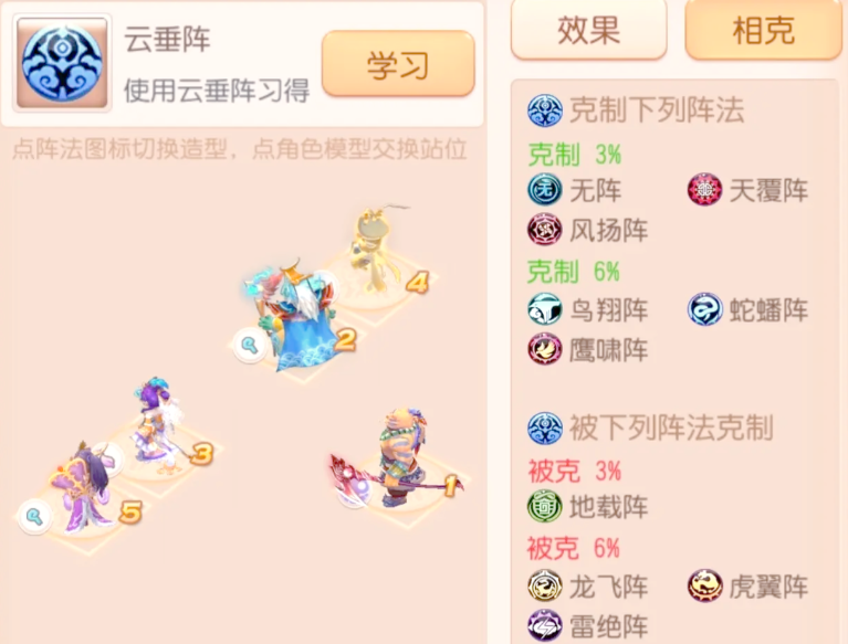 云垂阵在秘境中起到平衡攻防的作用,它通过调整队伍与敌人间的伤害比例来优化战斗表现。当阵法产生克制效果时,云垂阵能进一步提升己方伤害或降低所受攻击,因此需要玩家根据敌方门派和技能特点进行针对性部署。这种阵法在高难度关卡中能有效稳定队伍状态,避免因突发状况导致战斗失败。