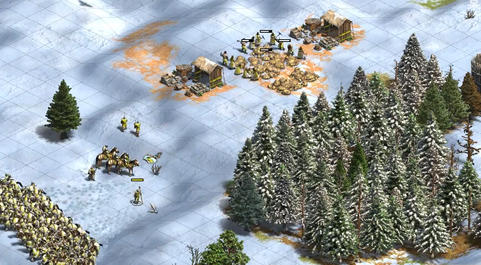 开局后应立即集结初始的分散部队,并优先保护英雄单位阿提拉,避免早期与敌人正面冲突,同时迅速指派大量村民进行资源收集,优先狩猎鹿群并尽快转为农田耕作,以确保食物供给能够跟上军事发展的消耗,由于无需建造房屋,节省下来的木材和注意力应立刻投入到早期兵营与马厩的建设中,实现比对手更快的军事起步。