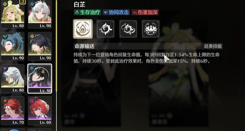 白芷的复活机制属于被动生效的保险技能,与她主动的常规治疗技能相辅相成。她的常态技能组主要专注于持续治疗,例如共鸣技能应急预案和共鸣解放刹那合弥都能为队伍回复生命值,而延奏技能还能为队友提供伤害加成。复活能力是在这些常规治疗手段之外的一道额外安全防线,确保了队伍在极端情况下的续航能力。