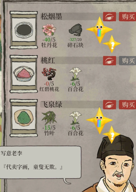 飞泉绿颜料可以通过兑换的方式在多个游戏地点获得。在苏州府的虎丘探险区域,画室商店提供飞泉绿的兑换服务,需要玩家准备五个竹叶和五个百合花作为交换材料。应天府的应天城郊地图中,画室也支持相同的兑换,材料需求一致。苏州府的丽娘府宅区域设有一个早餐摊,这里可以兑换飞泉绿,但需要五个牡丹花、五个竹叶和五个百合花。这些兑换点分布在不同的探险地图中,玩家需要解锁相应区域并访问商店才能完成交易。
