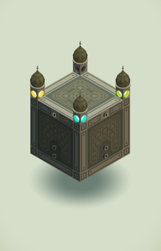 第8关箱子是一个结构精巧的谜题,其核心机制在于操控一个可开合的立方体建筑的不同面,以进入多个独立的空间并激活所有灯塔。这一关没有传统的路径连接,你需要通过点击建筑侧面的四个按钮来打开不同的立面,每个立面背后都是一个独特的解谜场景,目标是在所有场景中触发机关,点亮对应的灯塔。