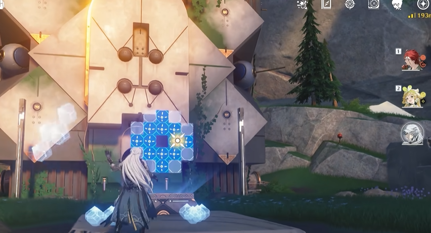 除了驱动核心谜题,稷延遗址东侧还有一个小实验室需要解锁,它位于怨鸟泽-龙山渡的坐标点位(77,86)。这里有一个拼图挑战,要求你将所有蓝色区域全部覆盖掉;通过移动方块来填满格子,完成后门会自动开启,里面可能有更多奖励等待发现。