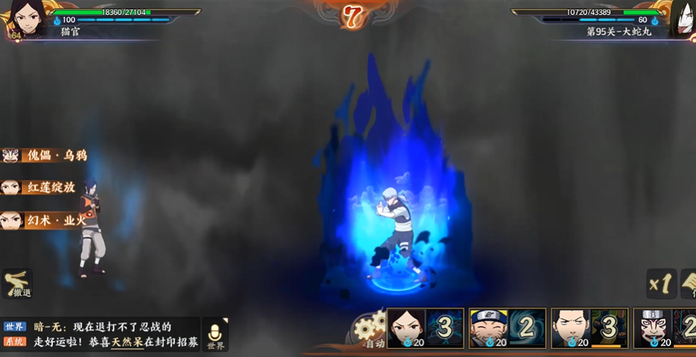 这场战斗有不少细节需要格外留意,比如通灵兽的选择,乌鸦是一个不错的选项,它提供的增益效果能有效辅助队伍。由于敌方技能释放存在一定的随机性,比如大蛇丸有忍者阵亡减冷却的被动,可能导致对方的奥义顺序发生变化,因此玩家需要根据实际情况灵活调整自己的打断和目标选择顺序,不能完全死记硬背流程。