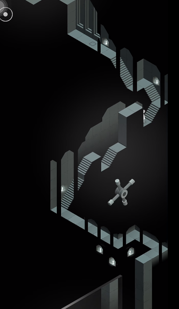 进入新场景后,解谜方式引入了可滑动的墙体模块。玩家首先需要拉出场景右侧的一个圆环,形成通路,同时滑动左侧的滑块墙体。此处的挑战在于配合使用场景底部的旋转阀门与可上下滑动的墙体平台,为艾达铺平道路。玩家需转动阀门以改变平台朝向,让艾达能够走到特定的开关处,触发新的通道。继续调整阀门和滑动墙体,引导艾达不断向下层移动,直至进入一个向下的楼梯通道,来到一个全新的空间。在这个空间里,艾达需要依次踩踏多个地面上的黑色方块开关,每触发一个,远处的道路就会发生变化,最终连通向下的阶梯。