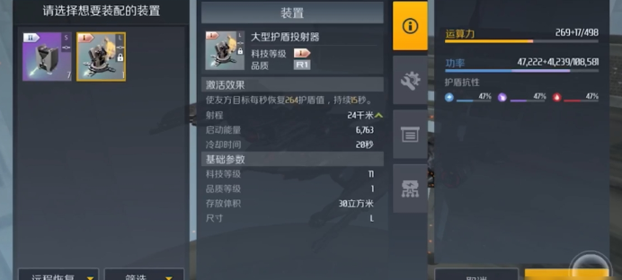 若是参与PVP会战,则需采取最稳妥的防御配置,老老实实堆满5个防御组件,3个抗性组件建议按照2动能1电磁的比例搭配以平衡抗性短板。大型护盾生成装置成为必带装备,在队友的支援维修下能让战舰持续作战,此时必须充分发挥狙击激光炮的射程优势,始终保持在最远距离进行安全输出才是取胜的关键。