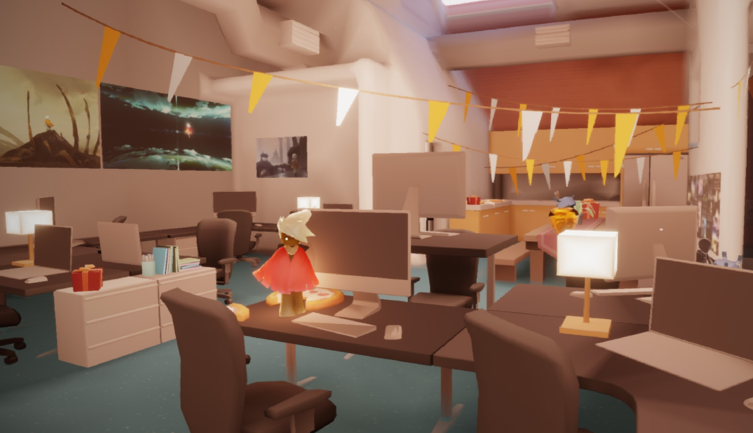 活动期间进入办公室是最简单的方式。官方会在特定活动开放办公室入口,玩家无需蓝斗篷即可进入。具体方法是前往禁阁左后方区域,找到穿蓝色斗篷的NPC小蓝并与其对话,他会带领玩家穿过屏障进入办公室。需小蓝只在活动期间出现,平时无法通过此方式进入。进入后会看到一个开阔空间,天空中有小白船可以乘坐飞行,云端还有乐高机器人彩蛋。办公室顶部设有守卫大炮,点燃蜡烛可以变成炮弹发射。内部还有餐厅区域,燃烧暗物质后会出现NPC,可以购买蓝斗篷。