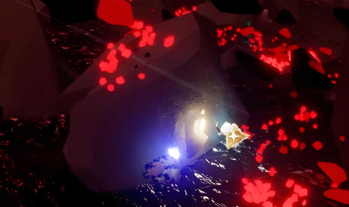 进入风暴眼核心区域后,风会变得特别大,这时候要控制好角色缓慢前进。右拐直走再左拐就能看到一座石门,进去后会发现光之翼和通往最终区域的路。这段路既有飞石又有皮皮虾,建议先规划好路线再行动。可以躲在有红旗的石头后面等待时机,看准飞石停止的间隙快速通过。记得多利用障碍物掩护,被皮皮虾发现时还有几秒反应时间可以找地方躲藏。