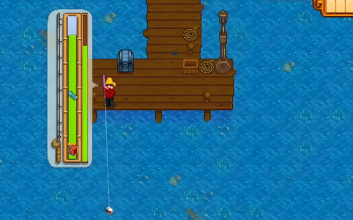 除了鱼竿和钓具,食物buff也能帮你更轻松地钓鱼。比如海泡布丁和龙虾浓汤能临时增加钓鱼等级,让绿色条变得更宽,钓稀有鱼时特别有用。平时可以多囤一些增加钓鱼技能的食物,关键时刻吃一个,成功率会高很多。深水区域和特定季节的钓鱼点更容易出高品质鱼,比如矿洞前的湖或者海滩码头。如果你想要钓传说鱼,一定要去对应的专属地点,比如春季的深山湖泊或者冬季的煤矿森林。