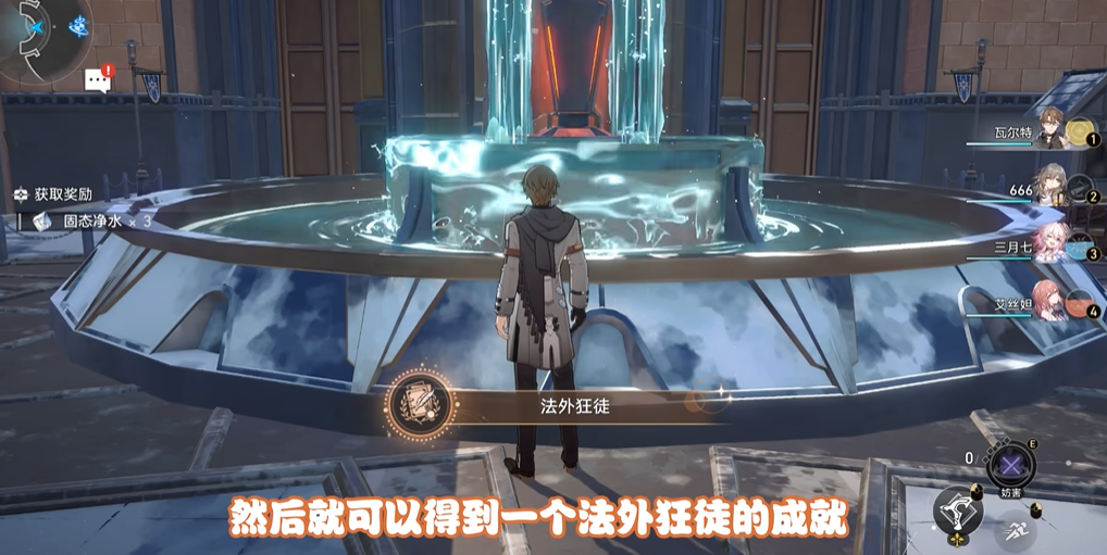 拿到道具后不要着急,先把主线任务推进到一定进度。等主线告一段落的时候,再回到之前那个喷泉的位置,和它进行最后一次互动。这时候选择提交崇高道德的赞许道具,系统就会弹出提示,恭喜你获得了隐藏成就法外狂徒。