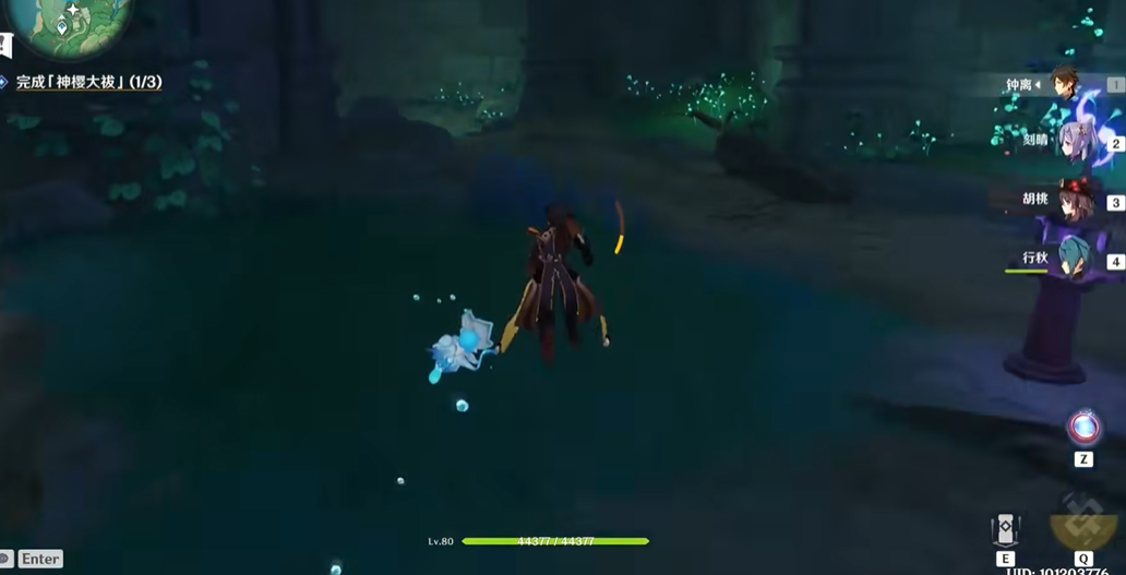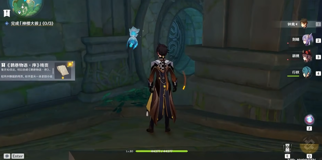 进入地底后,右手边有个大门需要解锁两个仙灵才能打开。一个仙灵在柱子上,另一个在大祓树的左边,找到并引导它们归位就能开启大门。解开左边机关后能获得一个宝箱,旁边有个水潭,跳下去一直游会发现五个机关,解锁后水位会下降,露出新的区域。这里建议带上续航能力强的角色,因为水下探索比较消耗体力。