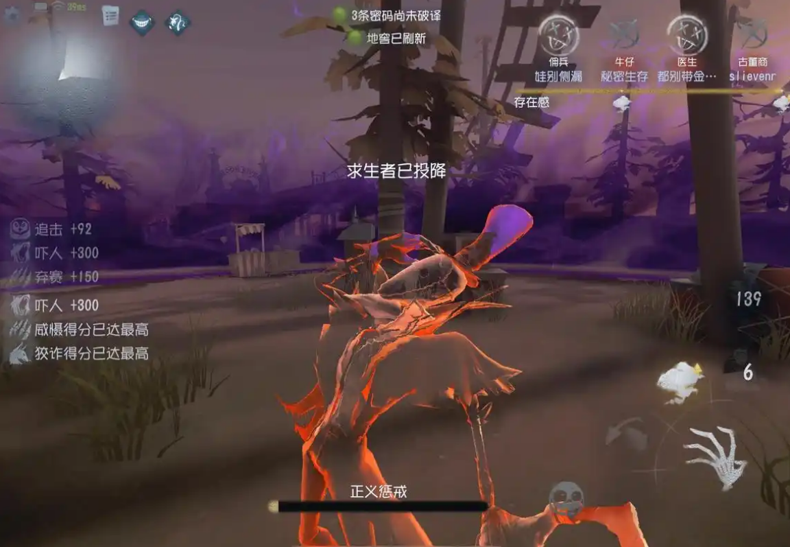 天赋加点方面,通用推荐禁闭空间搭配挽留,这套组合适合大部分地图。禁闭空间能封锁窗区,避免被求生者绕晕,挽留则增强开门战的威慑力。如果想提升前期节奏,可以选择破坏欲和狩猎本能,这套天赋更适合大地图,但对操作要求更高。辅助特质优先选窥视者,它能显示求生者位置,帮助雾刃精准命中。传送也是不错的选择,能快速支援守椅或干扰密码机。