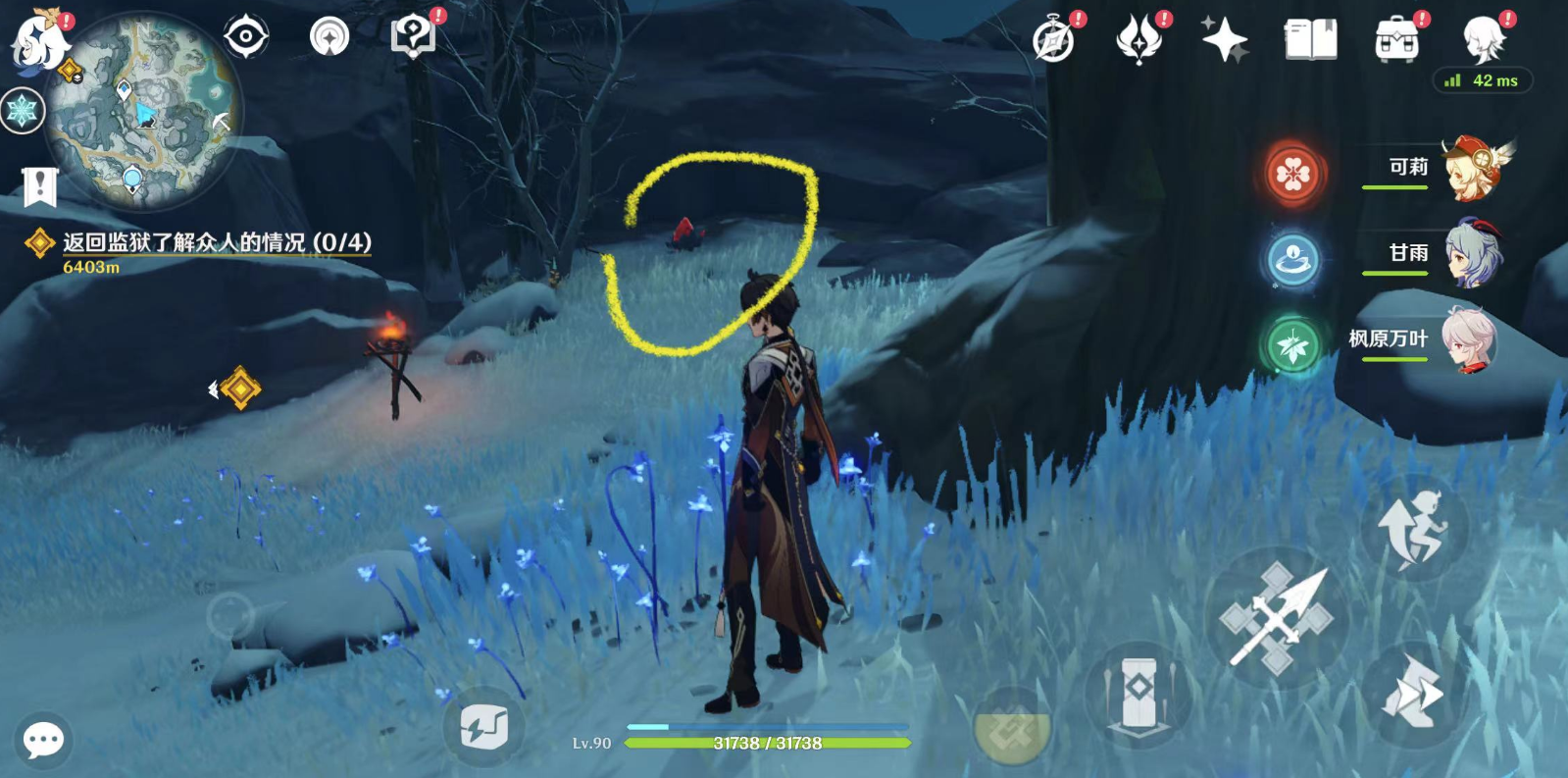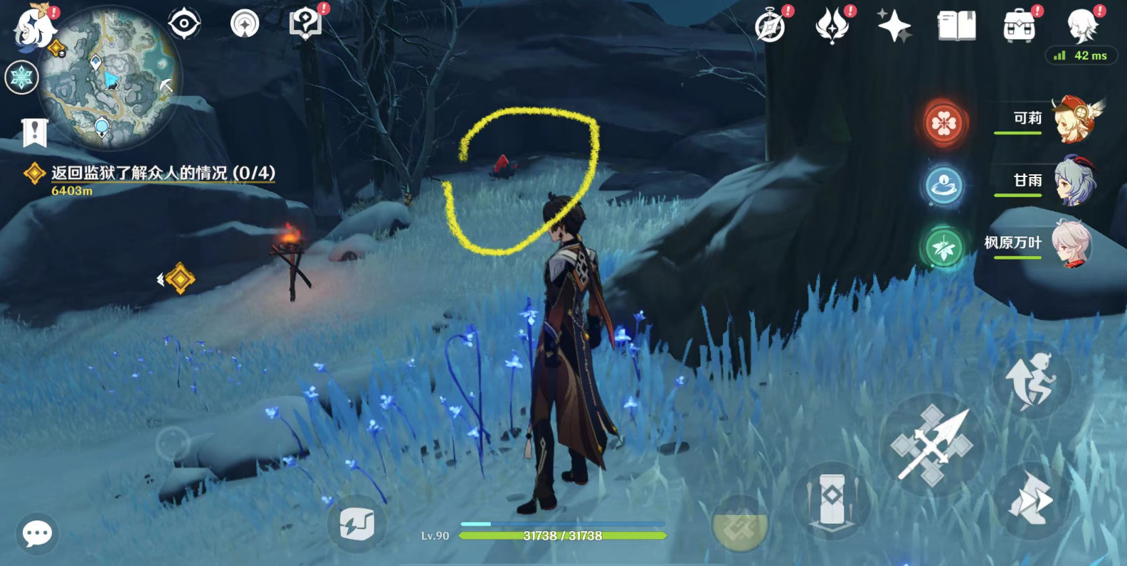 星荧洞窟的碎片位于底层,需完成限时挑战并引导仙灵归位,最后用深赤之石破除屏障。集齐三个碎片后,前往雪山山顶会发现碎片重新冻结,需再次用深赤之石各攻击一次。这次只需单次命中即可解冻,建议使用弓箭角色远程操作,避免因距离过远丢失buff。