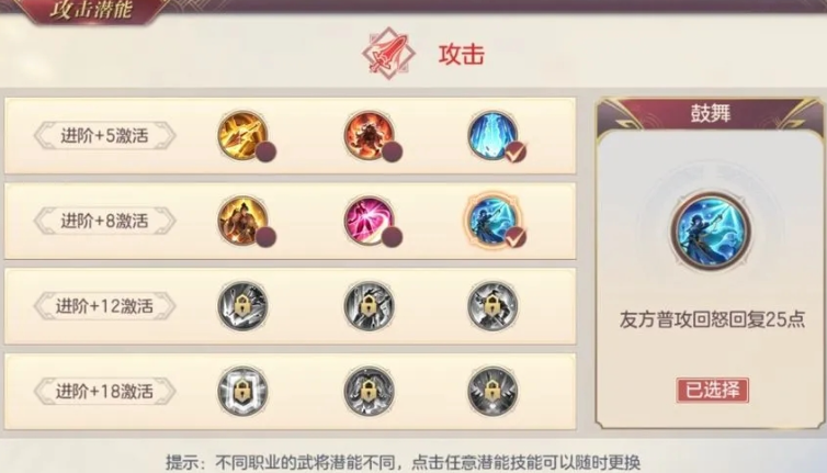 鲁肃的潜能加点需根据其辅助定位进行调整。振奋潜能可提升免伤效果,建议投入1点;应援潜能能增强治疗量,建议加满3点;攻袭潜能提供普攻回怒效果,适合投入2点;抵抗和怒放潜能则分别提升抗性与暴击率。这种加点方式能平衡鲁肃的生存与辅助能力,使其在战斗中稳定发挥作用。