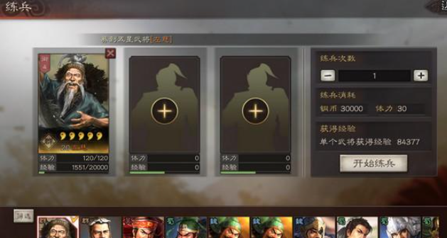 演武场也是后期练级的好地方,尤其是当你没体力扫荡的时候。演武场消耗铜币和少量体力,可以定向训练指定武将。虽然经验不如扫野地多,但胜在稳定,而且不用考虑战损问题。建议把演武场等级尽量升高,这样每次训练给的经验会更多。如果铜币充足,可以每天固定训练几次,长期积累下来等级提升会很明显。