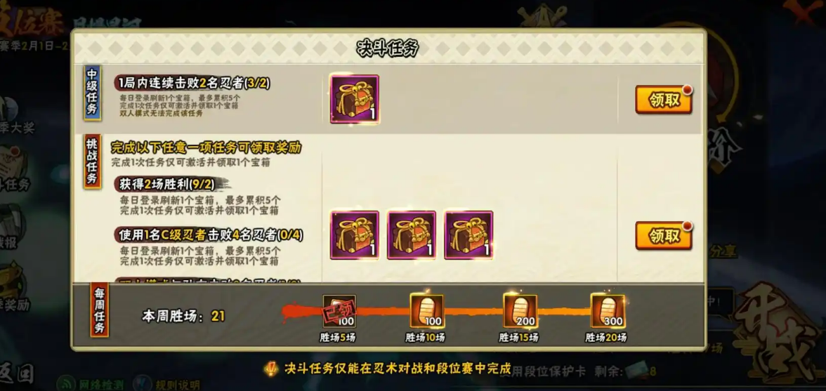 决斗场和忍界大战这类PVP玩法不仅能锻炼技术,还能赚金币。每周完成20场胜利能拿600金币,坚持一个月就是2400金币。决斗场的宝箱和羁绊对战每日箱子也能开出金币,虽然单次不多,但累积起来很可观。忍界大战每场战斗结束后会根据表现发放金币,排名越高奖励越丰厚,所以尽量提升自己的胜率和战斗技巧。
