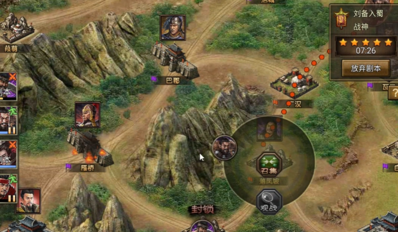 刘备入蜀困难难度是需要精细操作与战术规划的副本,核心在于合理分配武将、控制影子数量以及把握突进节奏。副本路线通常为起点→瓦口→涪城→分兵汉中与巴郡→雁桥→成都,其中瓦口和涪城需优先处理以触发攻击加成事件。开局建议派一名高战法武将进入瓦口刷1-2个影子,其余武将跟进单挑,同时分派另一名武将至涪城刷影子。瓦口单挑结束后,撤退补兵并转战涪城,确保拿下瓦口的攻击加成属性。