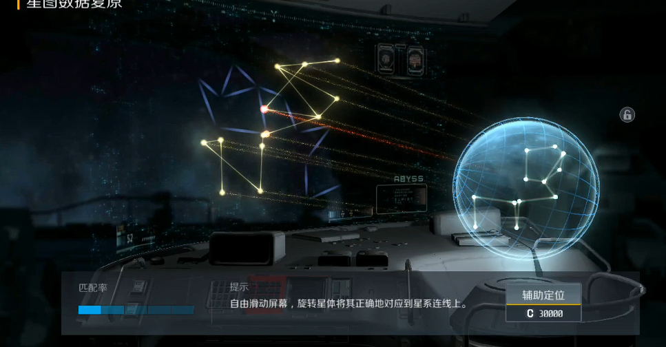 接取解密任务后,需通过星图定位环节确定目标坐标。系统会提供星座投影界面,玩家需转动天球使投影与屏幕上的星图匹配,左下角的匹配率进度条会实时显示校准程度。若操作困难,可支付信用点委托云端AI快速演算直接完成定位。