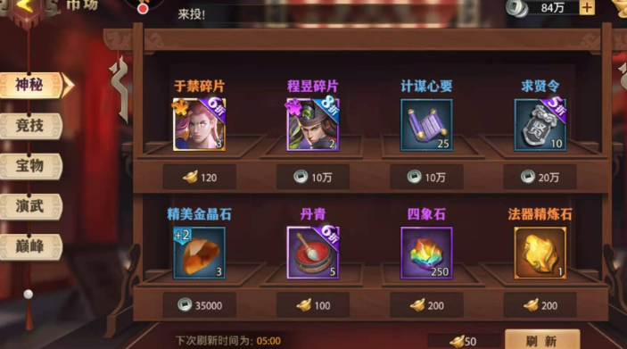 第五天和第六天任务稍微轻松些,图鉴绘册和治世能臣需要耐心。图鉴任务别强求,抽到三星马腾或典韦就算赚到;治世能臣任务需要等级支持,微氪玩家可能卡在39级,但第七天还有时间补救。记得每天买技能书和军令,市场里的蜀国和步兵技能书性价比最高,别浪费银两在其他地方。