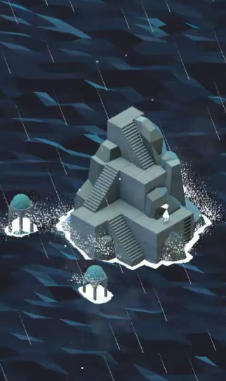 在第九关,玩家控制艾达来到一个阴暗的小岛上,这里有一朵醒目的红色花朵。捡起花朵后,沿着楼梯向下移动,周围的建筑结构会逐渐显现出来。在路径中,你会遇到一个旋转阀门,转动它可以改变楼梯和梯子的布局,比如向左转动会让左边出现一个梯子,而右边楼梯下降,从而打通新的路线。爬上新出现的梯子,按动上面的小方块开关,触发机关变化,然后继续向下探索。