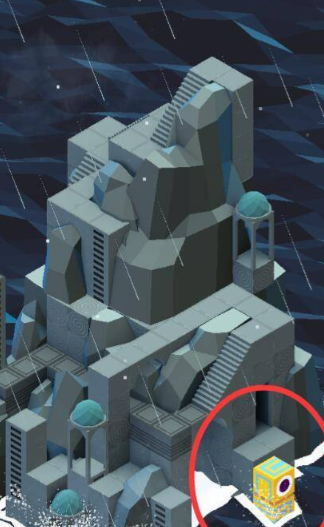 向右转动阀门后,之前下降的楼梯会升回来,爬下梯子走到下方,这时场景的天气会从阴沉变得明亮,城堡颜色转为粉红,同时一个黄色的图腾会出现。通过反复调整阀门的方向,帮助艾达到达右侧的台阶处,并移动图腾来辅助前进。操作图腾时,向左转动阀门,图腾会移动到特定位置,让艾达站上去,然后将图腾移回到入口处,这样艾达就能进入下一个场景。