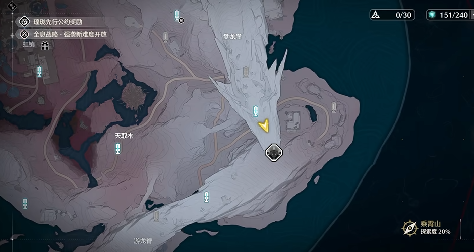 前往命定的纷争副本的具体操作并不复杂,玩家首先需要打开游戏内的大地图。在地图界面中,找到并定位至区域理珑,进而寻找到该区域下的乘霄山子区域。在乘霄山的地图上,可以找到一个名为卧龙冈的小型信标点,这就是我们的目标传送点。直接点击该信标进行传送,即可将角色快速送至副本所在的山区附近,这比手动跑图要高效得多。