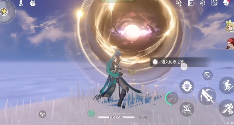 成功传送到卧龙冈的小型信标后,玩家就已经抵达了目标区域的山脚下。接下来的路程需要手动前进,抬头观察环境,朝着山顶的方向行进。在攀登的过程中,你会注意到一个显著的、覆盖着副本动画特效的入口。靠近这个入口后,界面上会出现相应的交互提示,选择进入时空之寰,就能正式开启命定的纷争的挑战。