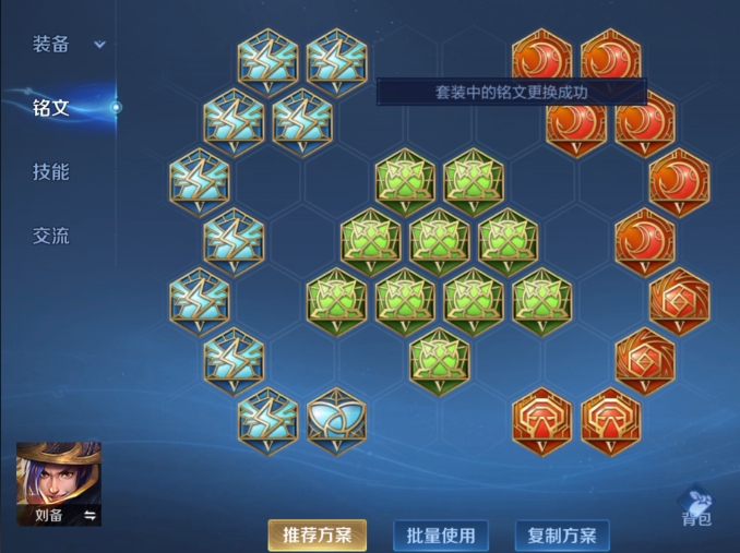 合理的铭文搭配能显著增强刘备的早期战斗力和续航能力。主流铭文选择包括红色铭文使用异变和红月混搭,提供物理攻击、穿透和攻速属性;绿色铭文固定为鹰眼,增加物理穿透效果;蓝色铭文以夺萃为主,赋予物理吸血以提升野区续航,另一种方案是10夺萃、10鹰眼、3无双和7祸源,强调暴击率和暴击效果,确保刘备在贴脸输出时能快速叠加被动双抗并维持高效伤害。