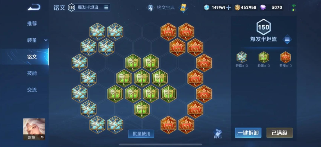 实战玩法中,嫦娥需保持高蓝量状态作战,蓝量越高护盾与伤害越可观,对线期用二技能吸蓝压制对手,配合一技能标记打消耗,清线后快速游走支援边路,团战中避免先手进场,待敌方关键控制交完后切入,利用技能连招打爆发与群体伤害,依托装备坦度在前排承受伤害,同时持续输出,追击与撤退时灵活利用移速优势拉扯,不要盲目深追,时刻关注蓝量变化,残血时借助吸血与装备回复快速反打,把控进场时机与蓝量管理,能最大化出装铭文的收益。